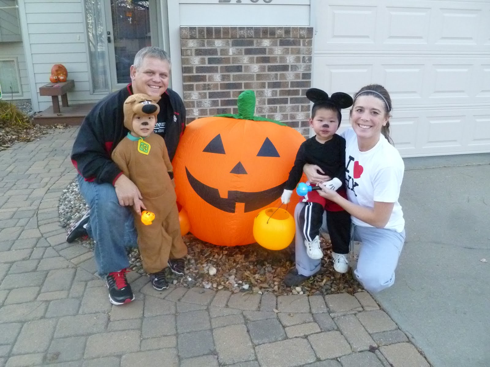 Other than doctor's visits, (Aiden was also at our GP a while back because for a couple of days about 60% of his body was covered with hives. Sheesh.) we've been having fall fun. The boys have loved being outside and "helping" dad. They're slowly getting better about playing together: longer periods of time, fewer fights, some laughter. It's a work in progress. And, of course, the boys went trick-or-treating. They loved it. We hit about a dozen houses with both boys, walking around our court; then Dad went on with Aiden while Ethan and I came back to the house to hand out candy. Dad and Aiden were gone a long time and made a haul! Ethan was content to greet the kids at our house and help me hand out treats. A lot of kids came out as the weather was gorgeous! Then, when Aiden finally came home, he insisted on handing out the goodies. He gave everybody their candy bars and would give them a "wekkum" when they said thanks. He's growing up so fast. :'( He has even slept through the whole night a few nights -- staying in his OWN bed! I'm afraid he's going to be in school before I know it. Ethan, too, is changing too fast. He's understanding so much of what we say and is starting to try to say quite a few words. I say try as he doesn't enunciate well, but we know what he means. Bye bye, help, Mom (just shy of 1 million times a day), no, shoe, light, stars, poop, drink...etc. He can even say, unprompted, "Iiii, laaaah, oooo!" Which is supposed to be, "I. Love. You." To the "untrained" ear, it might not sound like much, but trust me, he's talking. ;) He seems to be starting to form an attachment to us but will probably always be very gregarious and people-oriented, something we'll have to be aware of out in public, especially in large groups.
